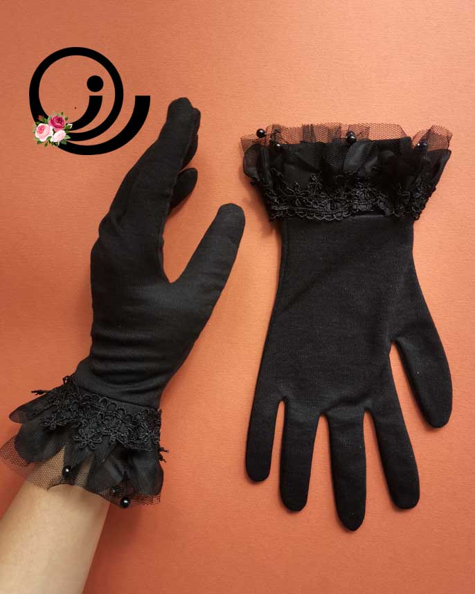 دستکش تمام نخی پرنسسی مشکی که با نام دستکش مجلسی نیز شناخته میشوند،بیشتر جنبه ی تزیینی دارد. ویکی از نکات مهم در تهیه دستکش ها سایز آن است.اگر سایز دستکش مناسب دست شما نباشد یا قابل استفاده نیست یا زیبایی کافی را ندارد. جنس این دستکش ها کشی است بنابراین روی انگشتان شما فیکس میشوند.