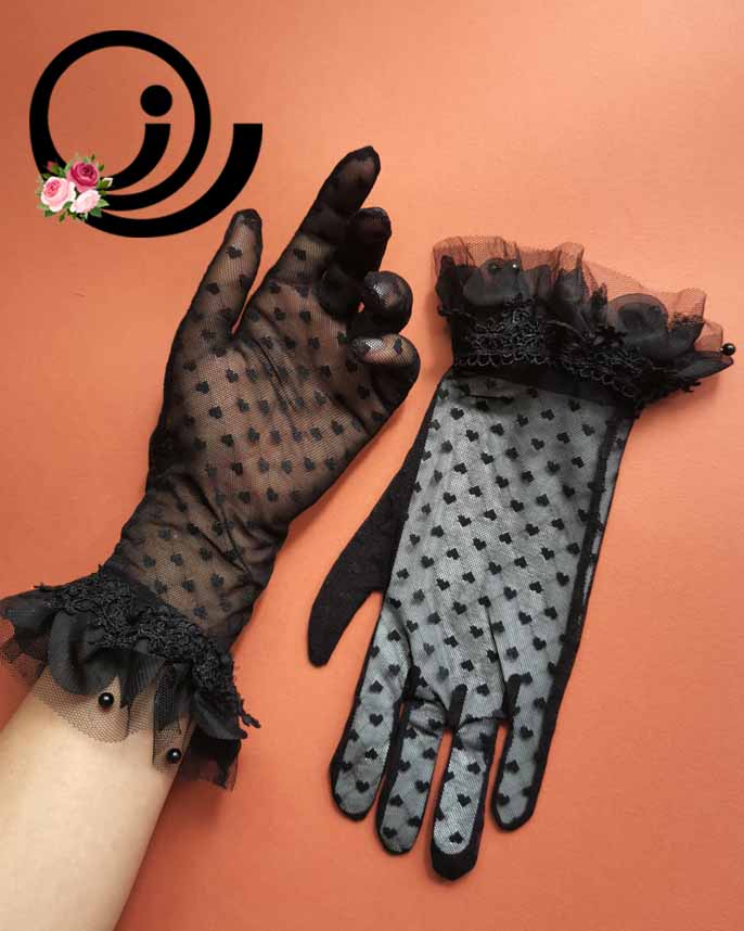 دستکش توری قلبی مشکی زنانه رازگالری