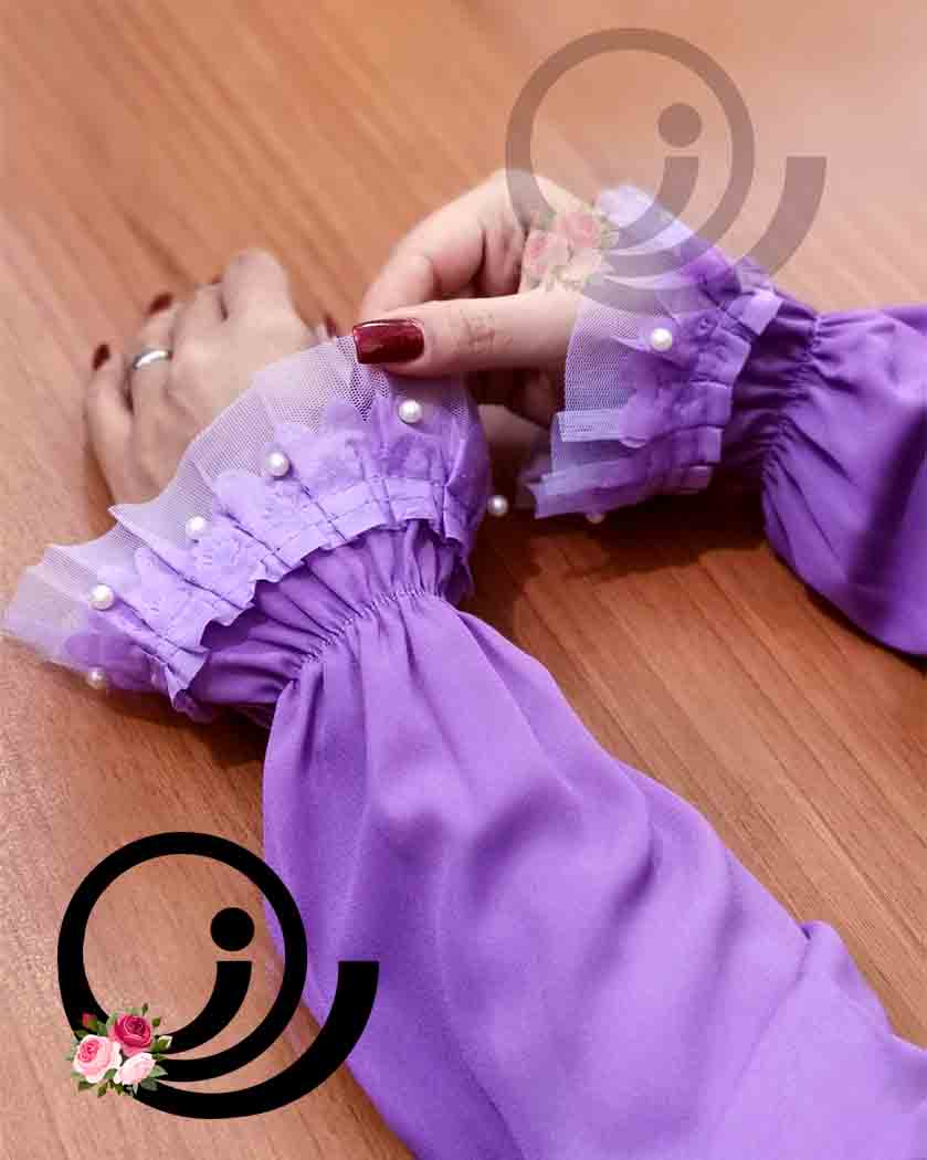 ساق دست چیندار شاپرک بنفش.در پوشش خانم های محجبه و بخصوص چادری ،روسری و آستین نقش بسزایی در استایل دارد.رازگالری با تاکید بر شعار “راز شیک پوشی”اقدام به تولید ساق دست در طرح های بدیع و زیبا کرده است.