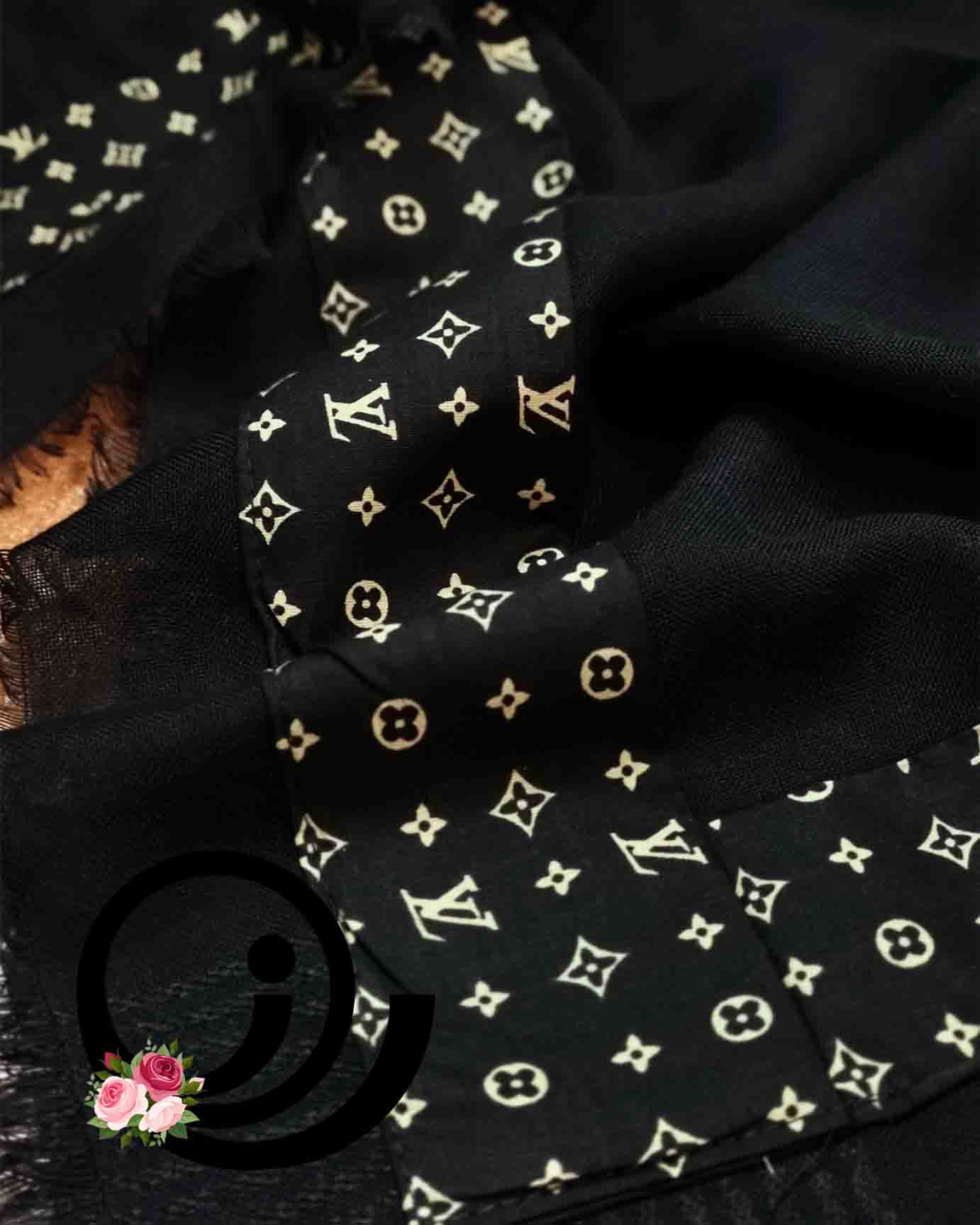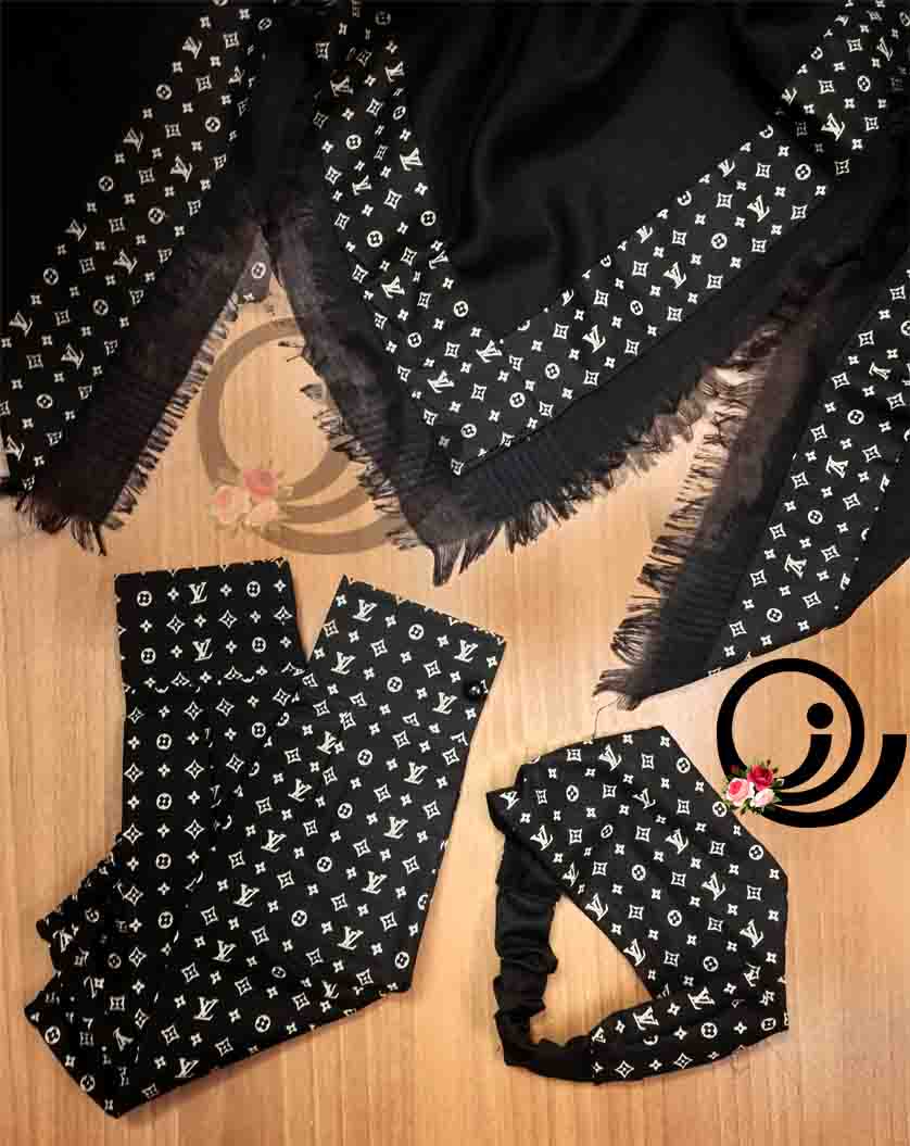 ست روسری نخی و ساق دست و هدبند مشکی طرحدار