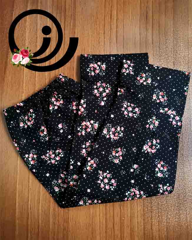 ست روسری نخی و ساق دست و هدبند مشکی گلدار خالدار