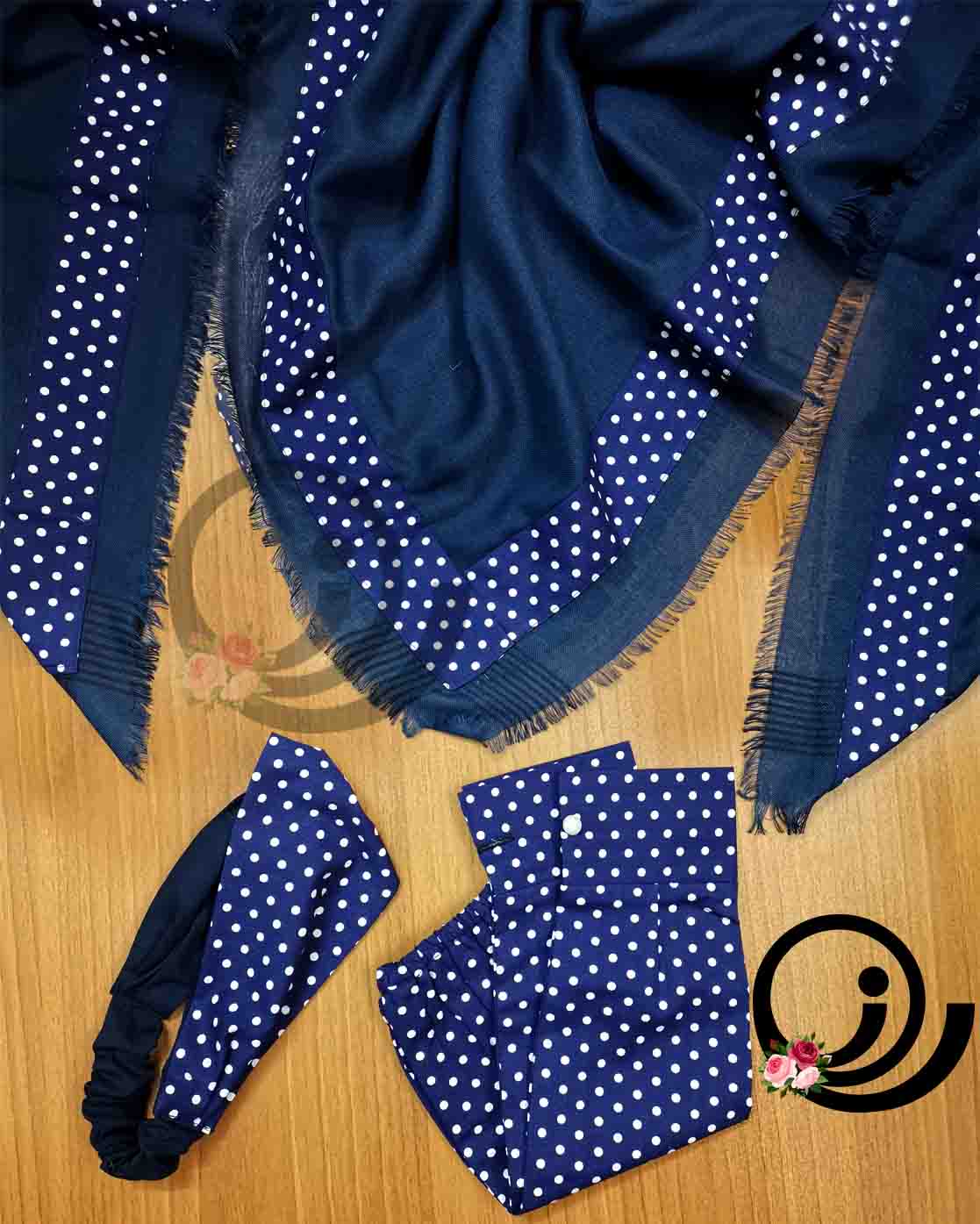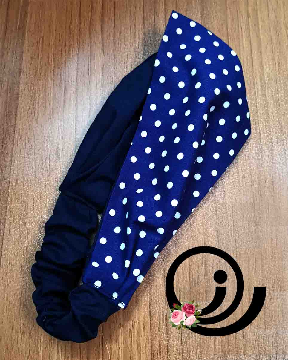 ست روسری نخی و ساق دست و هدبند سرمه ای خالدار