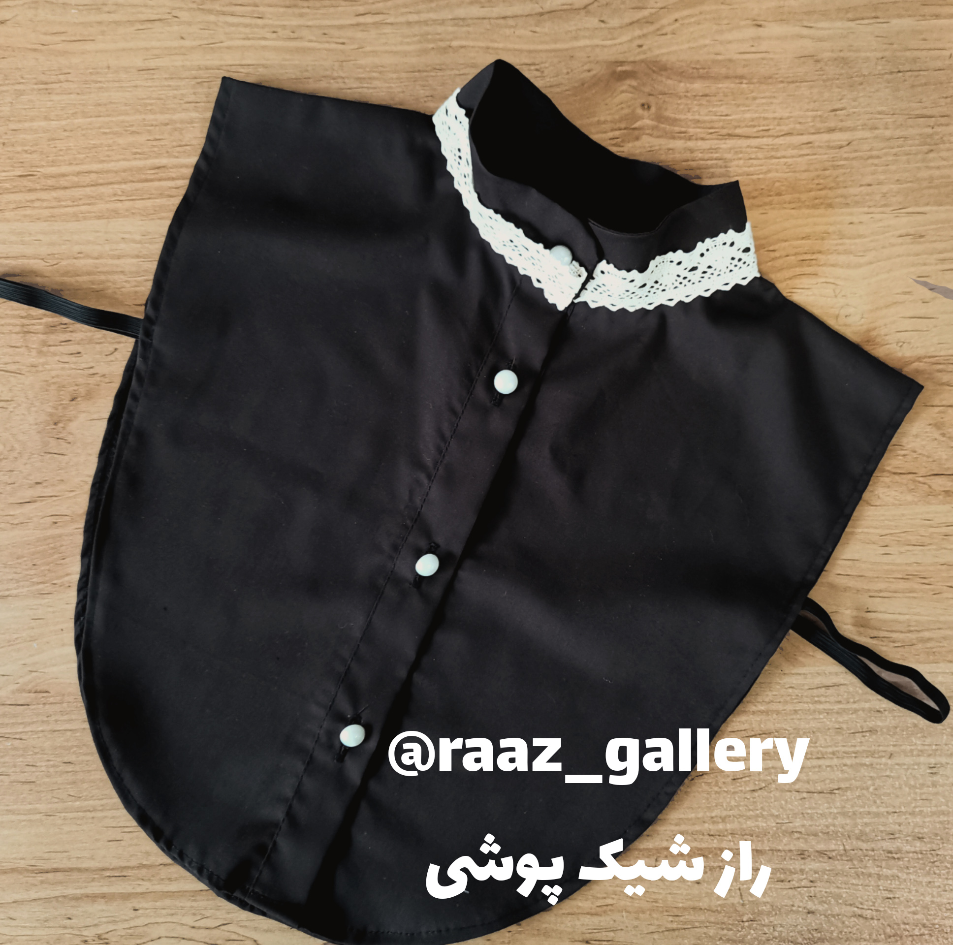 یقه حجاب هم جلو دارد و هم پشت.از پهنا سرشانه را پوشش میدهد .قد آن 30 سانت است و برجستگی سینه را می پوشاند.تا سایز 48 فری است.
