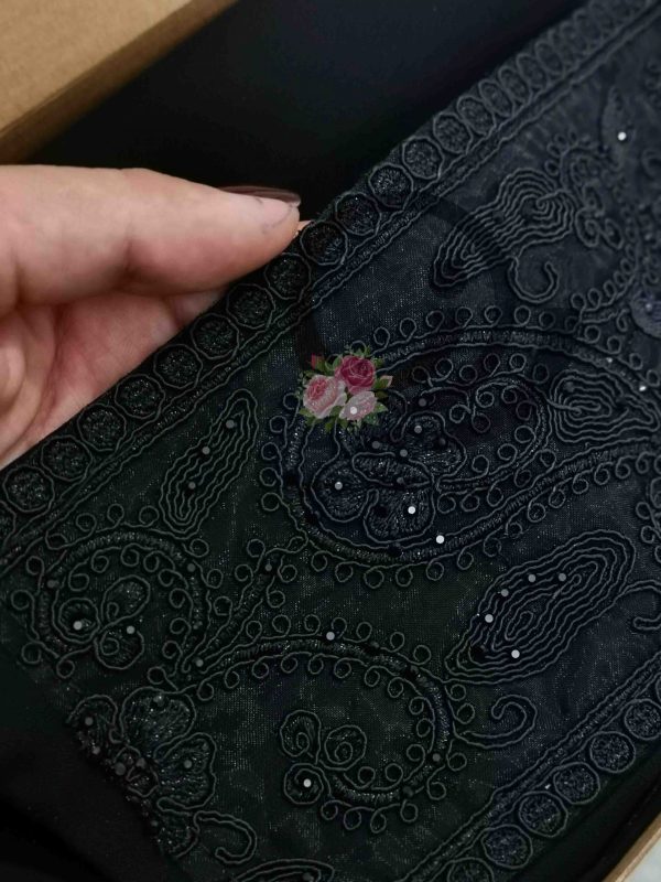 ست روسری و ساق دست چین سوزنی با حاشیه کرم گلدار