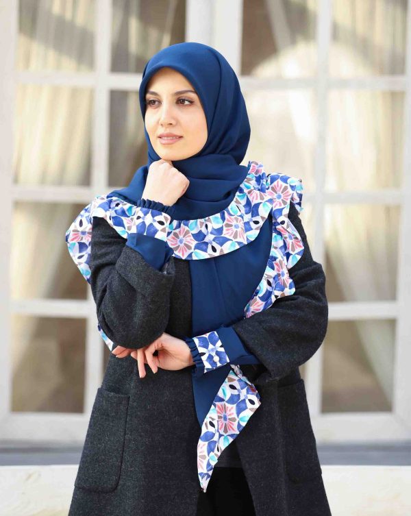 ست روسری و ساق دست سرمه ای طرح کاشی سما
