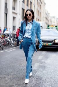 د) آبی: رنگ آبی با رنگ های سفید، بنفش، مشکی و گلبهی ست میشود فقط نکته ای که باید دقت کنید این است که آبی را با رنگ های قرمز و زرد ست نکنید.