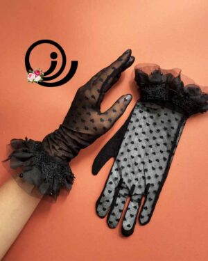 دستکش نیم انگشتی گیپوری مشکی زنانه که با نام دستکش مجلسی نیز شناخته میشوند،بیشتر جنبه ی تزیینی دارد. ویکی از نکات مهم در تهیه دستکش ها سایز آن است.اگر سایز دستکش مناسب دست شما نباشد یا قابل استفاده نیست یا زیبایی کافی را ندارد. جنس این دستکش ها کشی است بنابراین روی انگشتان شما فیکس میشوند.