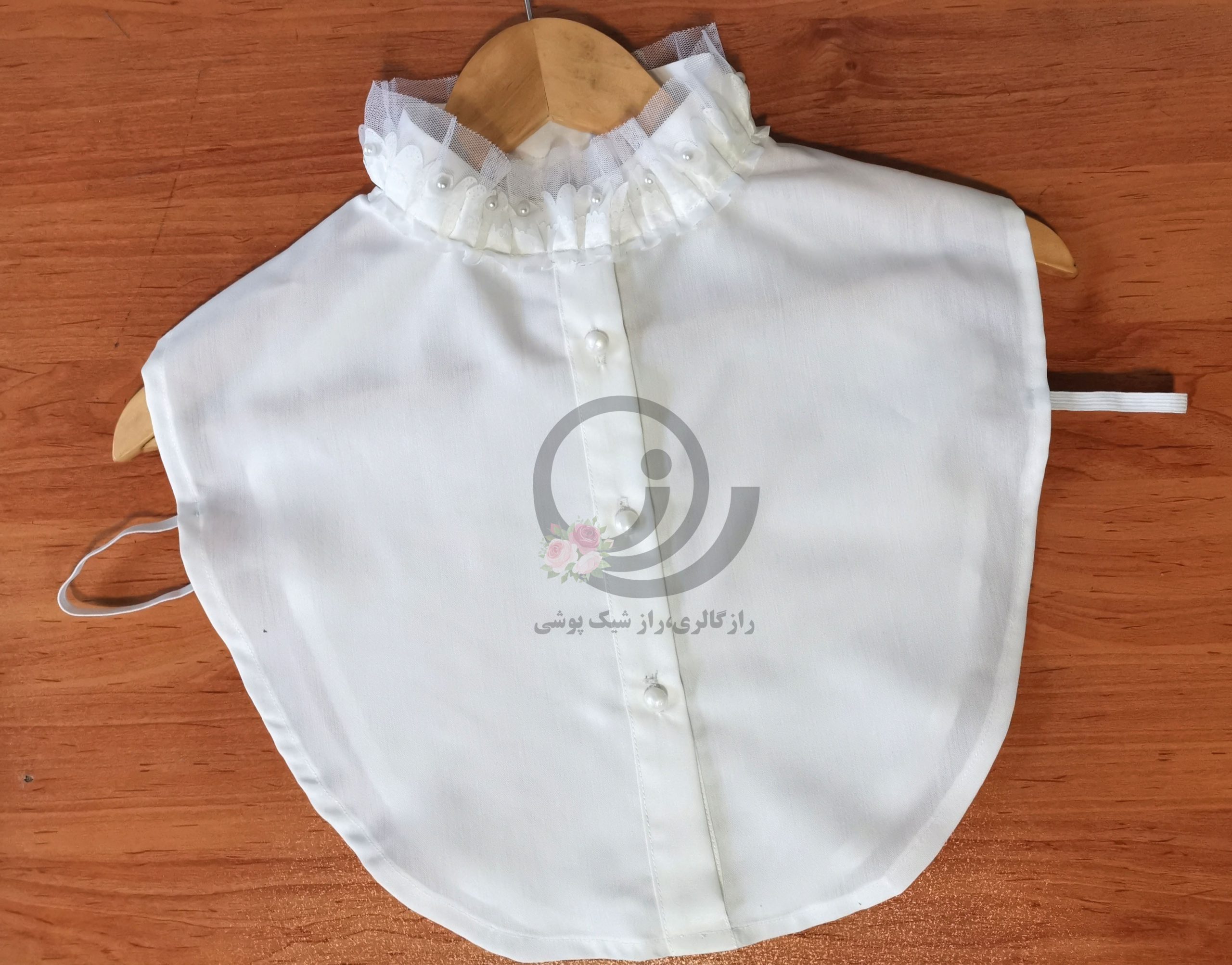 یقه حجاب  هم جلو دارد و هم پشت.از پهنا سرشانه را پوشش میدهد .قد آن 30 سانت است و برجستگی سینه را می پوشاند.تا سایز 48 فری است.
