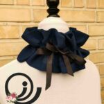 این یقه تا نزدیکی گوش جلو می آید و گلو و گردن را کاملا می پوشاند. قابل تنظیم با بند است و بخصوص برای استفاده همزمان با کلاه و توربان مجلسی بسیار کاربرد دارد.سراسر آن لایی حریر پرس شده است تا ایستایی لازم را داشته داشته باشد و حالت خود را حفظ کند.