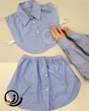 دامنی فیک بخشی از ست سهتکهی راهراه آبی رازگالری است و میتوانید آن را همراه با یقه حجاب و ساقدست راهراه آبی تهیه کنید تا استایلی یکدست، حرفهای و خاص برای محیط کار، دانشگاه یا موقعیتهای رسمی داشته باشید. ترکیب این سه آیتم، ضمن حفظ پوشیدگی، ظاهری منظم و شیک به شما میبخشد.