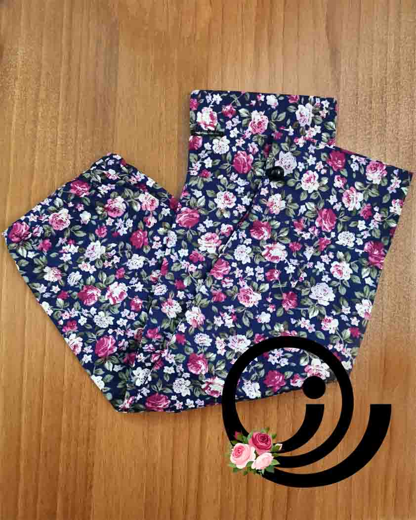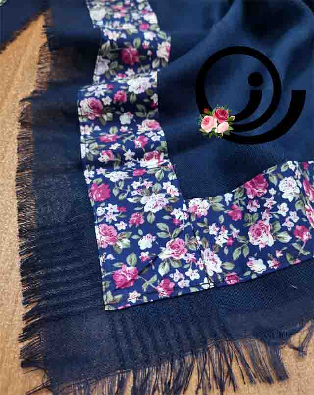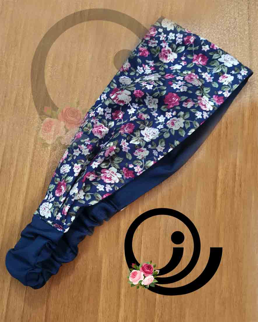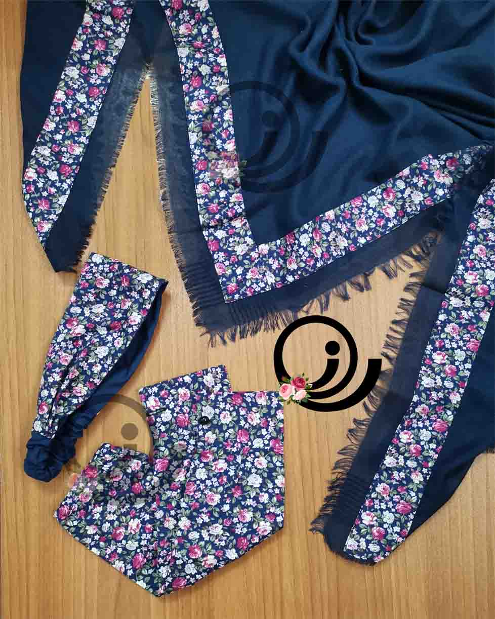 ست روسری نخی و ساق دست و هدبند سرمه ای گلدار