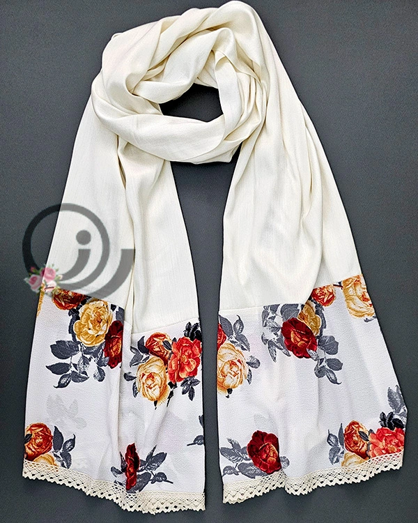شال شیری حاشیه دار با گل های آتشین روی سر