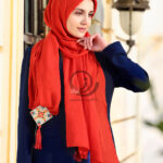 شال هنری اپلیکه تزیین شده با اپلیکه سوزندوری و منگوله های ابریشمی